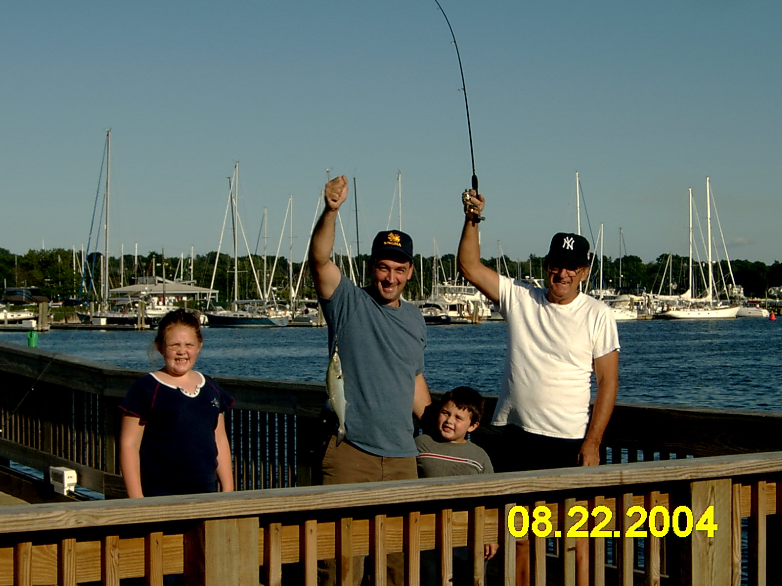 Me, my two beautiful children and my father, catchin some harbor blues in Stamford, CT. "It was a great day at sea!"